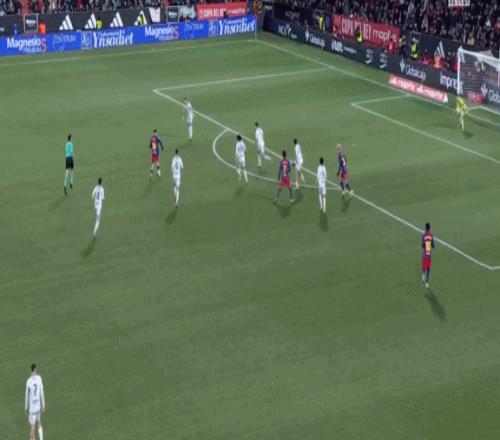 第39分鐘,德容前場斷球后助攻亞馬爾兜射破門,巴薩1-0!