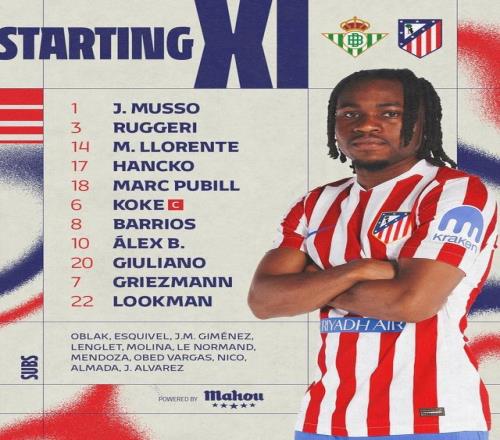 馬競客戰(zhàn)貝蒂斯:格列茲曼、小西蒙尼首發(fā)出戰(zhàn),盧克曼首秀