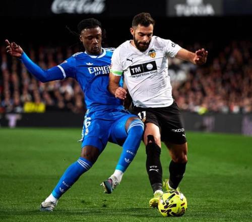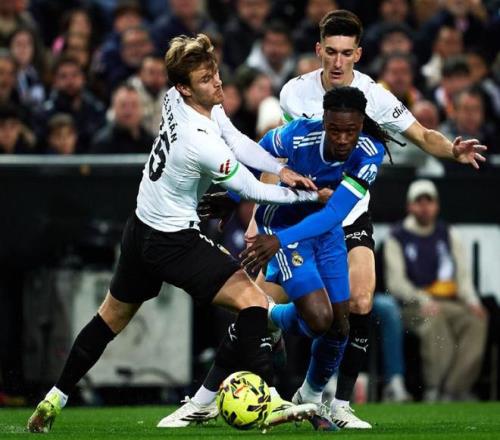 在兩支球隊(duì)賽季首回合交鋒時(shí),皇馬在伯納烏4-0血洗了瓦倫西亞,如今再度相遇,為了延續(xù)強(qiáng)勢(shì)的發(fā)揮,皇馬在梅斯塔利亞球場(chǎng)也是盡遣主力出戰(zhàn),在442的陣型中,讓庫(kù)爾圖瓦鎮(zhèn)守龍門(mén),大衛(wèi)希門(mén)尼斯、勞爾阿森西奧、赫伊森和卡雷拉斯構(gòu)筑后防,居萊爾、巴爾韋德、瓊阿梅尼和卡馬文加坐鎮(zhèn)中場(chǎng),雙箭頭則是姆巴佩搭檔貢薩洛加西亞。