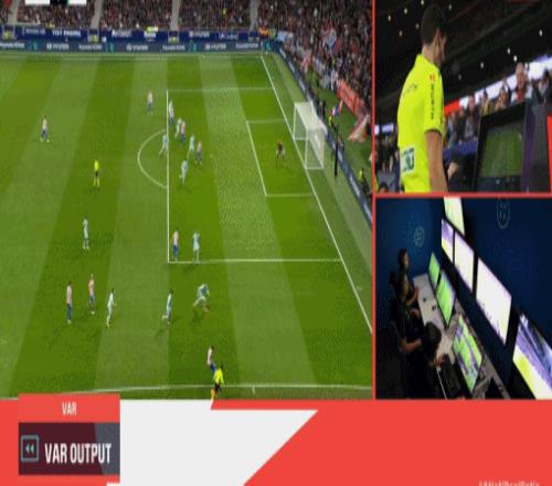 下半場第76分鐘,馬競造成迭戈-略倫特不幸烏龍,但VAR介入后判罰格列茲曼越位在先,這粒進球被吹,VAR劃線鏡頭顯示,格列茲曼的腳尖稍稍越位。