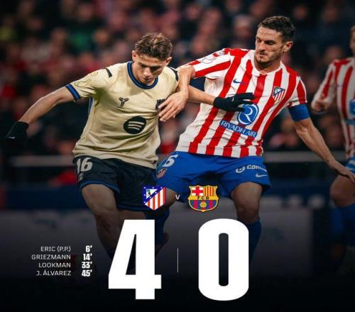 全場戰(zhàn)罷,馬競主場4-0橫掃巴薩,收獲國王杯半決賽首回合的大勝,一只腳仿佛已踏入決賽的大門!