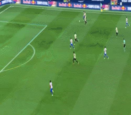 上半場補(bǔ)時(shí)第2分鐘,盧克曼得球橫傳,阿爾瓦雷斯跟進(jìn)爆射破門,比分4-0,馬競40分鐘連入4球!