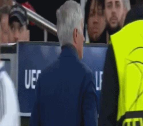 第85分鐘,威尼修斯回追,搶斷時放倒里奧斯,裁判并沒有向熊皇出示第二張黃牌,穆里尼奧極其不滿,沖入場內抗議,連吃兩張黃牌被請上看臺。