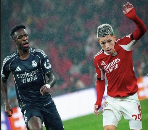 此役,姆巴佩重回首發與維尼修斯搭檔雙前鋒,第52分鐘,姆巴佩分球,維尼修斯左路內切轟出一腳超級世界波,皮球直掛死角,場上比分被改寫為1-0。隨后,維尼修斯與本菲卡邊鋒普雷斯蒂安尼發生口角,他向主裁判投訴自己遭遇種族歧視并返回替補席,后重新投入比賽。隨后的時間,雙方均無建樹,本菲卡主帥穆里尼奧則在第87分鐘抗議判罰被紅牌罰下。最終90分鐘戰罷,皇馬客場1-0小勝,在兩回合較量中占得先機。