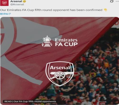 官方:阿森納在足總杯第五輪抽到了曼斯菲爾德,槍手客場作戰。