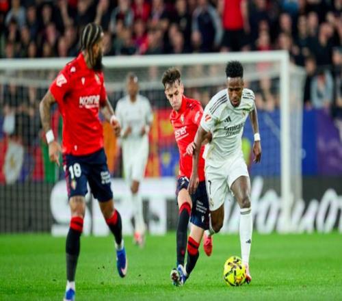 第30分鐘,奧薩蘇納差點取得領(lǐng)先,穆尼奧斯邊路傳中,布迪米爾的頭球擊中立柱,彈了出來。