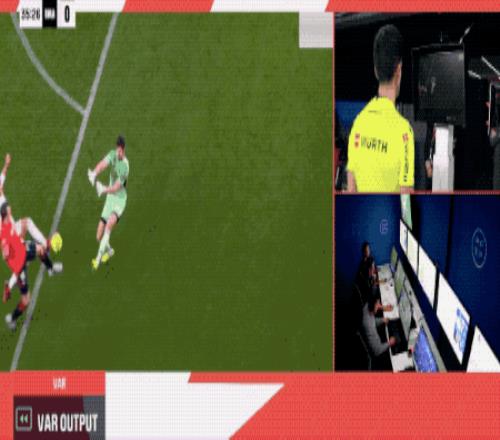 VAR立即介入,主隊球迷爆發(fā)了漫天的噓聲,裁判回看過后取消黃牌,認定庫爾圖瓦犯規(guī),給了奧薩蘇納點球。