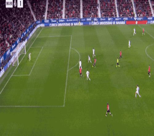 第23分鐘,面對奧薩蘇納的傳中,卡雷拉斯防守過程中險些自擺烏龍,皮球直奔死角而去,庫爾圖瓦做出神勇?lián)渚?,力保球門不失。