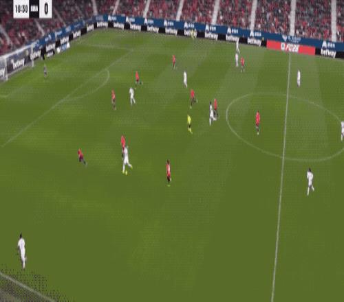 上半場補時階段,瓊阿梅尼禁區(qū)內(nèi)的凌空抽射沒能踢正部位,反倒是歪打正著,奧薩蘇納門將做出了關(guān)鍵撲救。