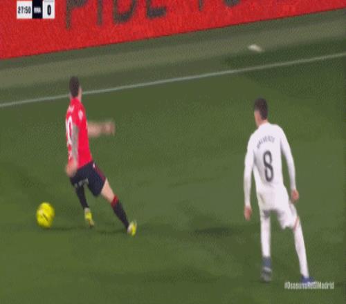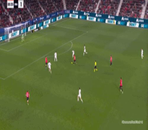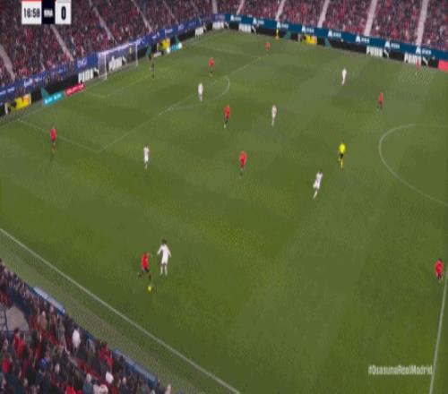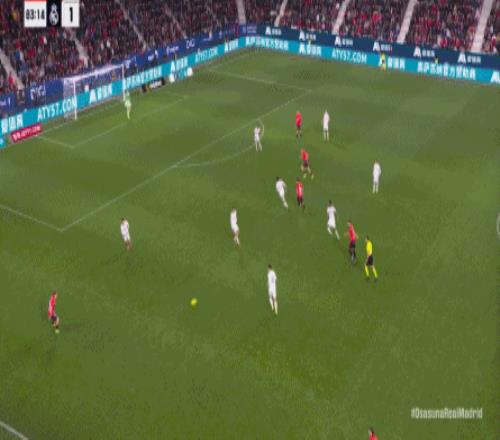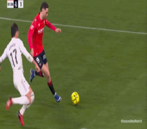 這是足球場上最殘酷的現(xiàn)實,于是在第90分鐘,奧薩蘇納在中線區(qū)域施加壓力,讓皇馬出現(xiàn)了失誤: