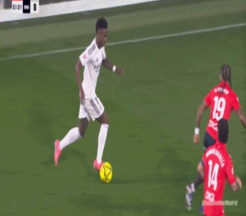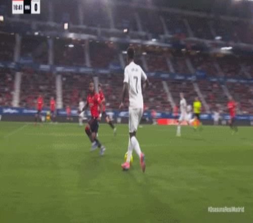 首先在進攻端,維尼修斯從邊路啟動進攻,起腳質(zhì)量不佳,直接被奧薩蘇納門將沒收,維尼修斯必須要從邊路開打,包括姆巴佩帶著防守球員到他身邊接球的思路,都是皇馬的老毛病了,一點都不稀奇: