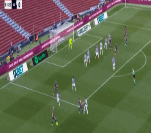 第32分鐘,坎塞洛傳中,德容后插上墊射破門,巴薩2-0領先萊萬特!