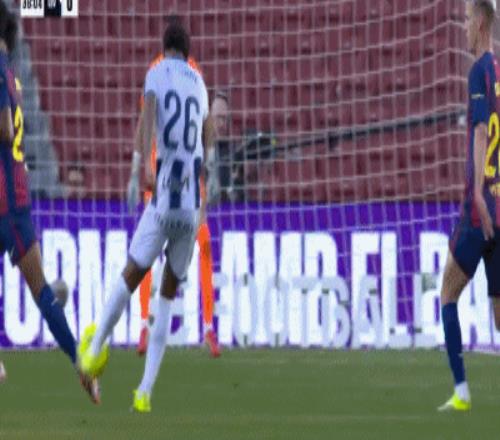 第46分鐘,下半場比賽開始之前,巴薩球員換回英文球衣