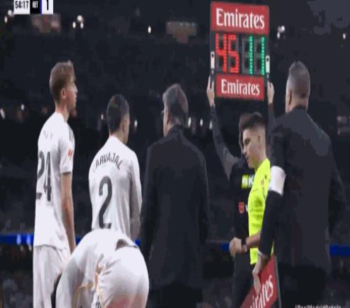 第56分鐘,皇馬換人,羅德里戈、赫伊森和卡瓦哈爾替補登場