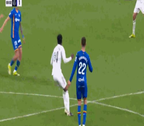 第90+5分鐘,維尼修斯著急搬起受傷對手,被主裁黃牌警告