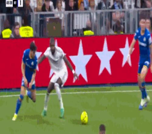 第42分鐘,維尼修斯傳中,楚阿梅尼頭球攻門被撲住