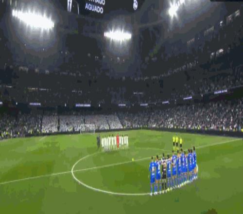 賽前儀式,雙方球員為去世的皇馬董事會成員阿瓜多默哀