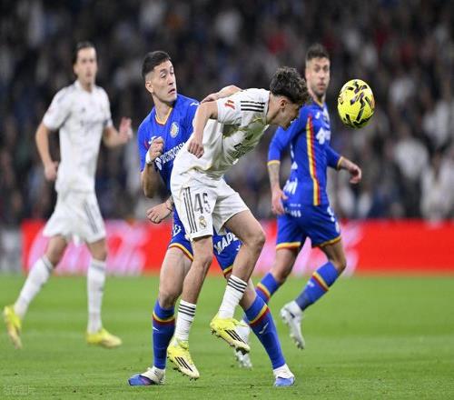 易邊再戰落后的皇馬展開猛烈反撲,第51分鐘,貢薩洛禁區內背身回做,19歲小將皮塔克禁區弧頂左側迎球推射,這球力度和角度都不行,索里亞穩穩將球撲住。隨后皇馬這邊換人調整,皮塔克,阿拉巴和阿諾德被換下,羅德里戈,郝伊森和卡瓦哈爾替補登場。第61分鐘,皇馬右側角球機會,呂迪格爭搶中摔倒在地,主裁沒有吹罰點球。第76分鐘,皇馬又是右側角球制造機會,呂迪格小禁區內超近距離搶點甩頭攻門,皮球幾乎是擦著門柱出了底線。補時階段,著急上火的皇馬球員上演輸人一幕,替補登場的馬斯塔托諾怒噴裁判,直接領到一張紅卡。1分鐘后赫塔菲和主裁也給個面子,利索哨響后踢球吹到第2張黃牌,2黃變1紅也被罰下場。最終皇馬苦攻無果,主場0:1爆冷輸球,遭遇2連敗。