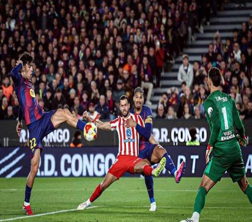 第11分鐘,孔德意外受傷,巴爾德緊急登場,坎塞洛換到右邊路。費蘭托雷斯、拉菲尼亞的連續射門欠缺運氣。第29分鐘,巴薩戰術角球開出,亞馬爾拿球橫傳禁區,貝爾納爾門前推射破門,1:0!久攻之下,巴薩終于敲開了馬競的球門。上半場補時階段的最后一分鐘,佩德里突入禁區,被普比爾放倒,裁判直接吹罰點球,拉菲尼亞一蹴而就,2:0!