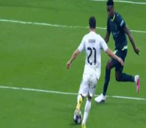 第27分鐘,卜拉欣-迪亞斯帶球推進,威尼修斯左路接應,內切之后送出妙傳,巴爾韋德插上小角度打門,再度洞穿多納魯馬的十指關,完成梅開二度好戲,皇馬再下一城,2-0!