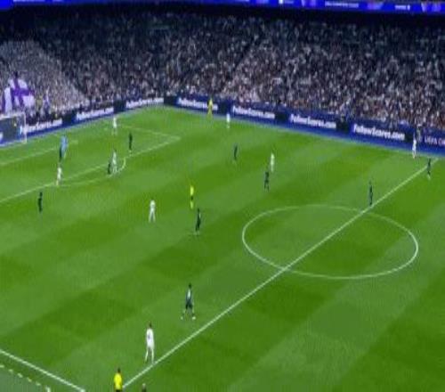 第75分鐘,皮塔奇后場護球失誤,奧賴利近距離捅射,庫爾圖瓦逆天反應,伸腿將球擋出,皇馬逃過一劫。