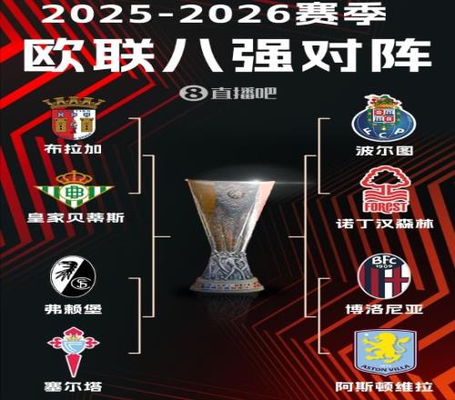 就此,八強對陣分別是布拉加對貝蒂斯、弗萊堡對塞爾塔、波爾圖對諾丁漢森林、博洛尼亞對阿斯頓維拉。歐聯(lián)杯的1/4決賽第一回合將在4月8日、10日開打,之后次回合會在16日、17日開打。