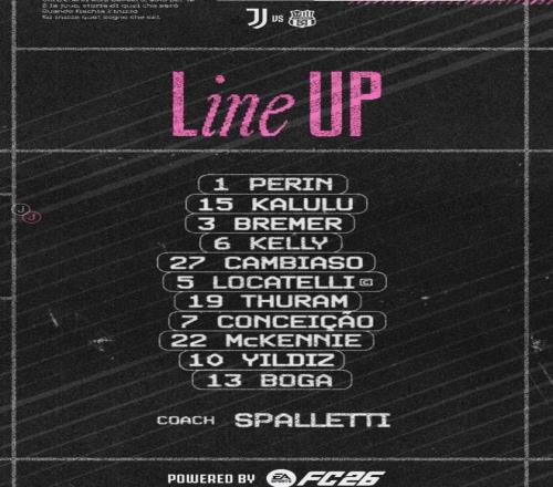 尤文首發:1-佩林、27-坎比亞索、15-卡盧盧、6-凱利、3-布雷默、19-圖拉姆、22-麥肯尼、5-洛卡特利、7-孔塞桑、10-伊爾迪茲、13-博加