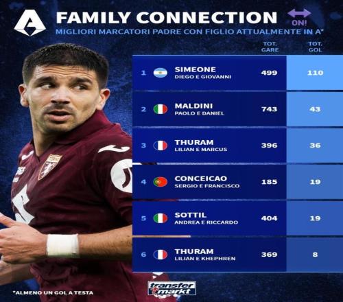 意甲歷史父子進球榜:基耶薩父子第2,西蒙尼父子第5