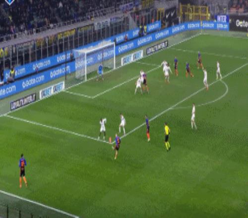 第41分鐘,迪馬爾科傳中,勞塔羅禁區(qū)躍起頭球破門扳平。