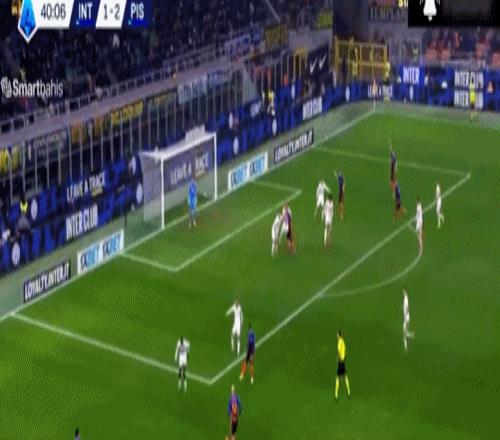 第45分鐘,勞塔羅轉身擺脫分球左路,巴斯托尼插上傳中,落點恰到好處,皮奧-埃斯波西托搶點頭槌建功。國米6分鐘內連轟3球,3-2反超對手。