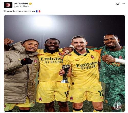 而拉比奧特的爆發(fā),也是米蘭“法國幫”集體發(fā)威的體現(xiàn)。本場除了他,恩昆庫創(chuàng)造點球并罰進,邁尼昂穩(wěn)健零封,福法納踢滿全場。米蘭官方社媒賽后特意曬出四人合照,配文“法國幫”。這條中軸線(門將-中場-前鋒)的穩(wěn)定輸出和默契,構(gòu)成了米蘭戰(zhàn)術(shù)體系的國際縱隊核心,他們的出色狀態(tài)是球隊戰(zhàn)績的硬保障。