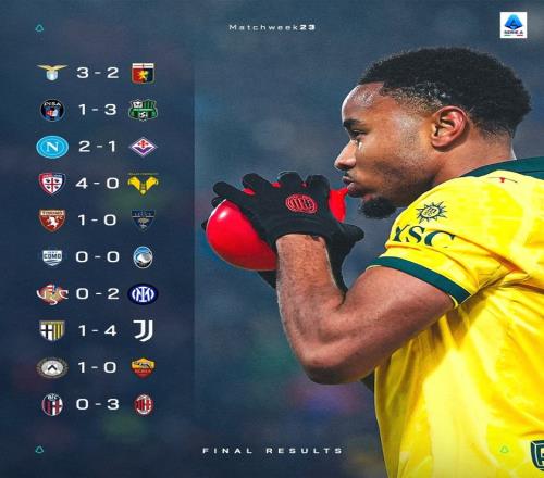 隨著今日凌晨AC米蘭3比0完勝博洛尼亞,意甲第23輪十場比賽全部結束。國際米蘭2比0小勝克雷莫納,繼續以五分...
