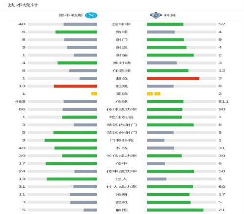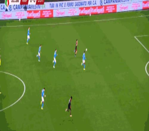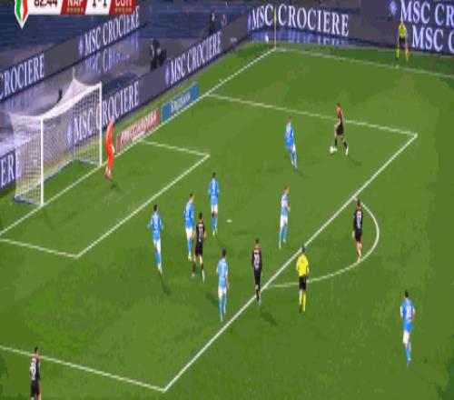 第46分鐘,扳平比分,韋爾加拉單刀破門,那不勒斯1-1