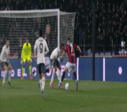 第47分鐘,諾斯林中路搶點破門,幫助球隊扳平比分,博洛尼亞1-1拉齊奧