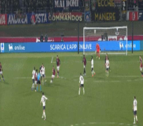 第33分鐘,博洛尼亞左側(cè)角球,卡斯特羅搶點破門,博洛尼亞1-0拉齊奧