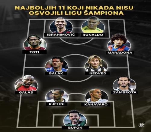 外媒整理了“從未拿過歐冠的最佳11人(4-4-2)”榜單,布馮、伊布拉希莫維奇、羅納爾多、巴拉克、內(nèi)德維德等名...