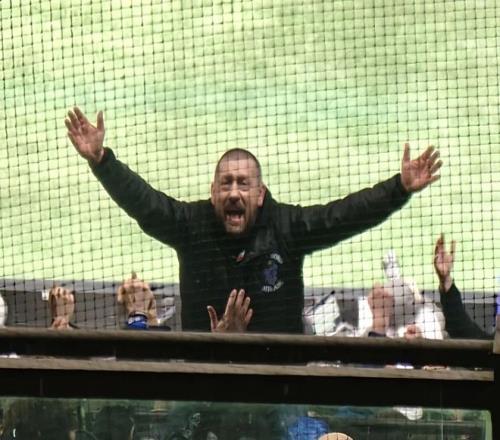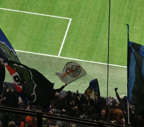 北看臺的死忠球迷區旗幟一直在飄揚。整個北看臺,從下到上全都是死忠球迷。整場比賽,他們都在歌唱,歡呼,主隊進球時會瘋狂慶祝,裁判的判罰稍微令他們不滿意,刺耳的噓聲則會響徹全場。