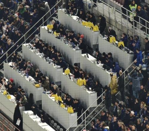 坐在我旁邊的是一個年紀輕輕的意大利人,穿著一件淡黃色的皮夾克。他看到我手中拿著配有長焦的OPPO手機大為震撼,詢問我是哪國人。當得知我來自中國后,他問我是專門為這場比賽而來嗎,是不是國米的支持者?