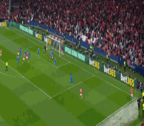 隨后的比賽進入消耗戰。本菲卡持續沖擊,謝爾德魯普的折射吊門差點制造意外,庫爾圖瓦后撤單掌托出。