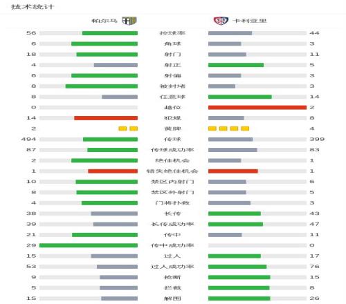 帕爾馬11卡利亞里,弗洛倫肖破僵,奧里斯塔尼奧扳平