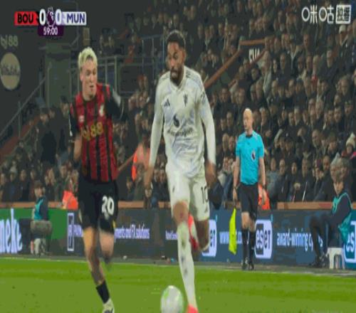 中場休息后,這位曼聯球星展現出一次極為精妙的第一腳觸球,希門尼斯在對位中完全無法跟上馬泰烏斯-庫尼亞。庫尼亞觸球后切入伯恩茅斯禁區,希門尼斯拉拽了這位巴西國腳的球衣,導致他倒地,為曼聯贏得點球。
