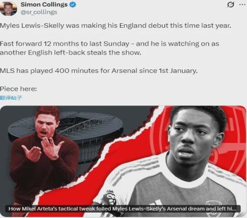 但本賽季,斯凱利的出場機會銳減,自2026年以來,他僅僅出戰了400分鐘的比賽,而阿森納甚至無法保證斯凱利在對南安普頓的足總杯比賽中獲得機會,因為因卡皮耶和卡拉菲奧里都需要比賽。