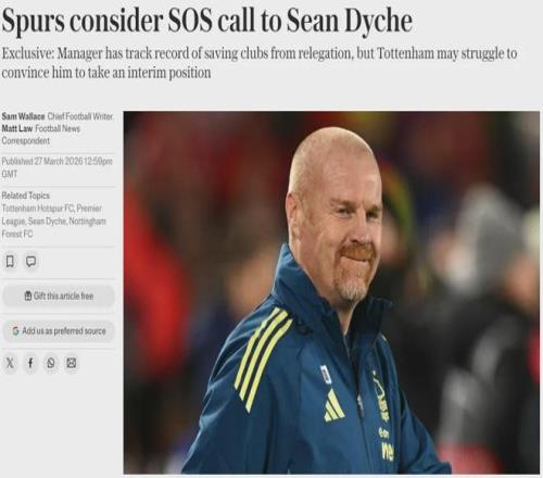 電訊報主編SW和記者ML聯合發文表示,熱刺正考慮任命肖恩-戴徹為救火教練,以幫助他們免于降級。