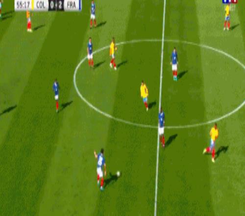 哥倫比亞在第77分鐘利用法國后防失誤追回一球。