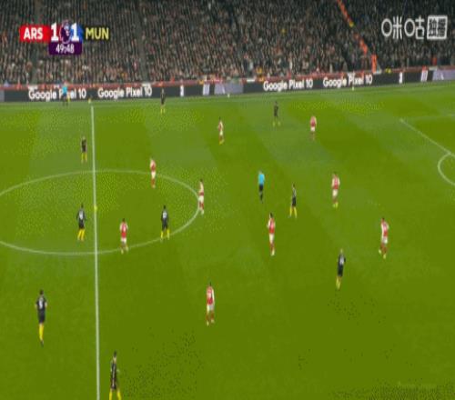 第50分鐘,曼聯反超比分。B費中路和多古連續做撞墻配合,隨后弧頂多爾古遠射世界波破門,阿森納1-2曼聯。