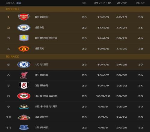 此役獲勝后,曼聯英超6輪不敗(3勝3平),23輪積38分,賽季首次躋身積分榜前4名。而阿森納遭遇3輪不勝(2平1負)后,被曼城和維拉縮小分差至4分。