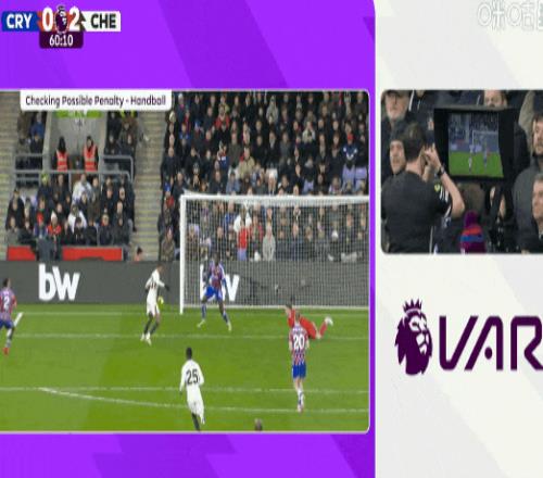 第58分鐘,康沃禁區內手球,主裁判回看VAR判罰“黃點套餐”,恩佐一蹴而就。切爾西3比0水晶宮!