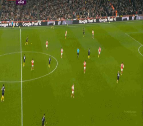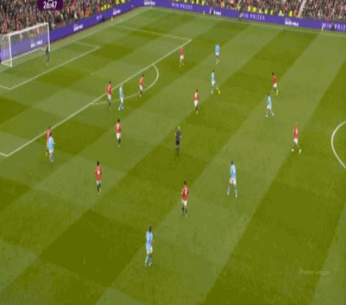因為中衛不行,所以需要在身側布置大量的人手,從而將中衛和核心防守區域徹底包住,以此來最大程度地保證防守端不丟球,這就是曼聯能夠在對陣曼城時打出零封,對陣阿森納時,只因為烏龍球和定位球失分的原因。