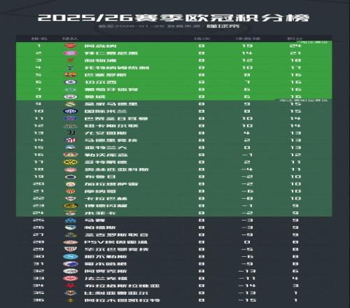 歐冠9支種子隊聯賽階段戰績:五隊直通十六強,四隊進入附加賽