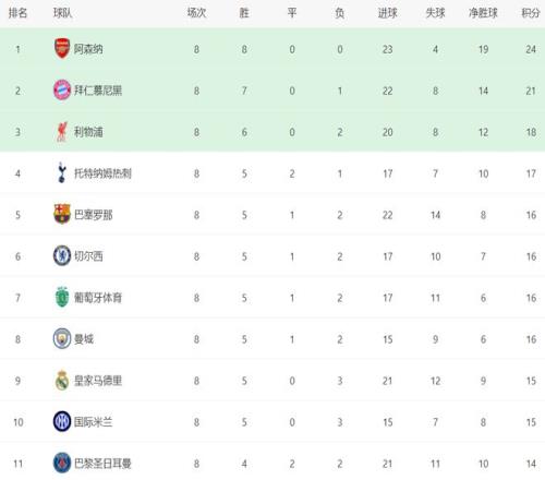 阿森納是歐冠唯一小組賽8場全勝的球隊,鎖定第1晉級16強。阿森納是歐冠36隊賽制以來首支聯賽階段全勝的球隊。阿爾特塔真是神了。 毫無疑問,阿森納就是奪冠最大熱門,進攻和防守都做得非常出色。英超球隊在這次歐冠小組賽表現都很出色,有5支球隊直接晉級淘汰賽,除了阿森納之外,利物浦、熱刺、切爾西和曼城都直接晉級16強。
